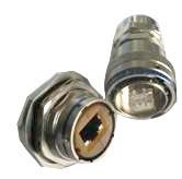 Байонетное соединение. Гиперболоидные гнезда. Герметичные, рассчитаны на погружение до 1 метра. С функцией scoop-proof. Материал корпуса: алюминиевый сплав. Устойчив к тяжелым условиям эксплуатации. Применяются для передачи сигнала в среде с повышенной влажностью или погруженной под воду.
